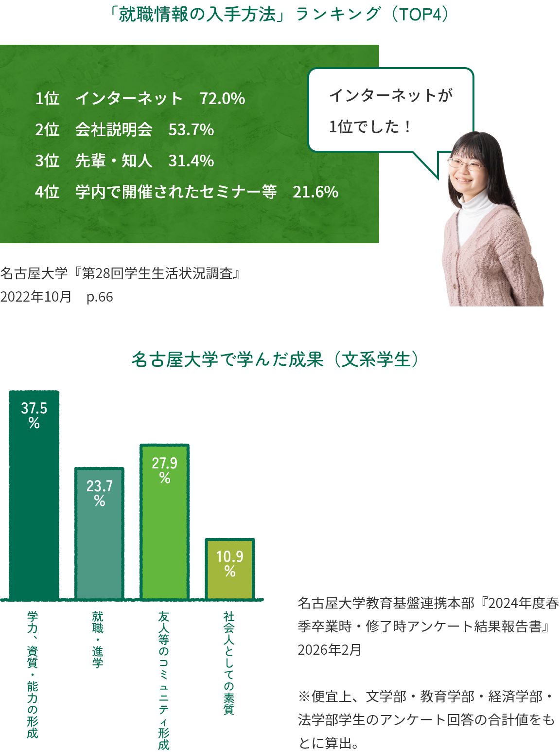 - ・名古屋大学教育基盤連携本部『2024年度春季卒業時・修了時アンケート結果報告書』2026年2月
