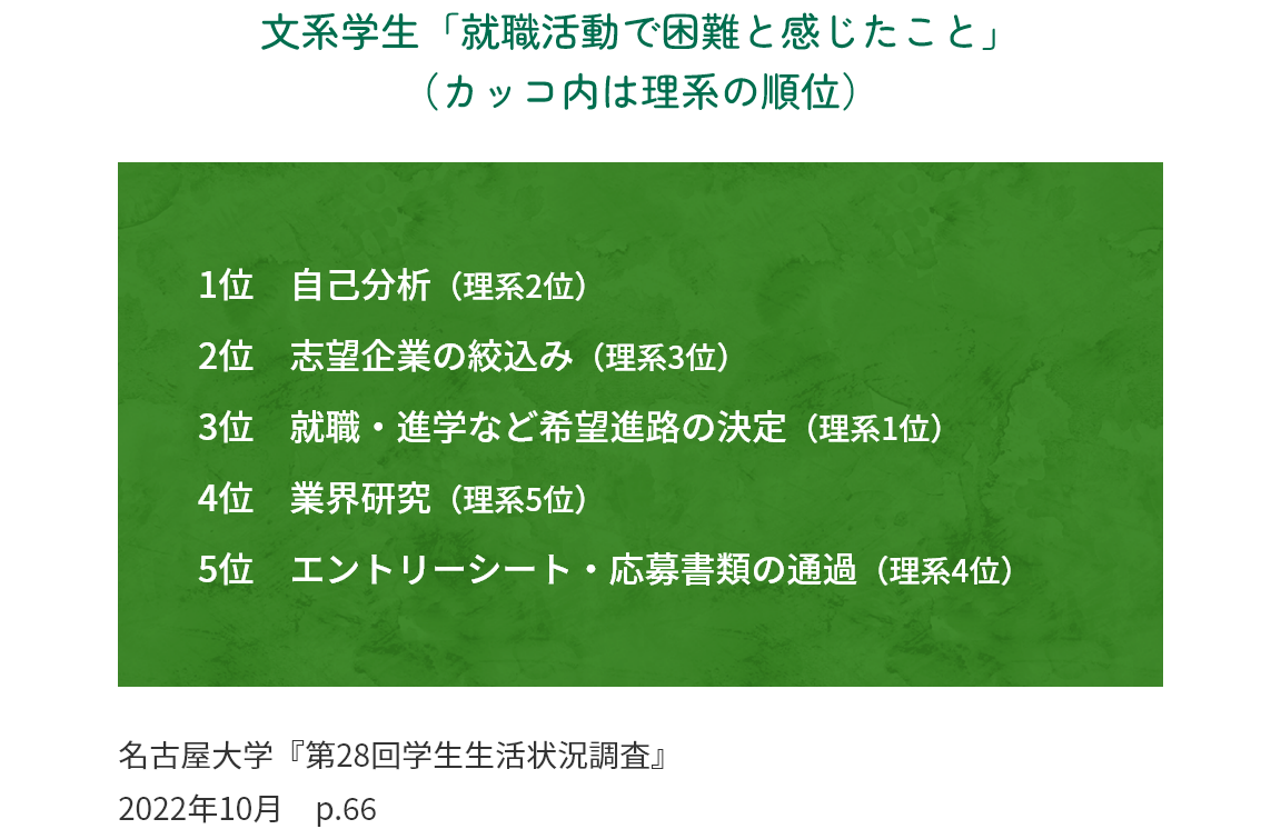 しかし、就職活動が本格化するにつれ、特有の壁にも直面します。これは自分だけでなく、多くの文系学生が共通して感じていた悩みでもありました。