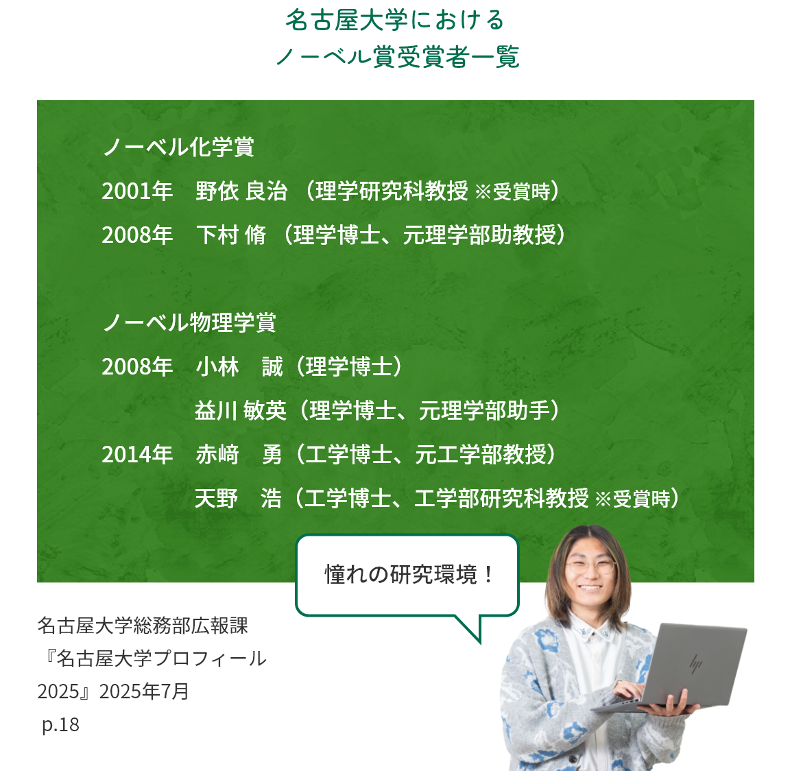 https://office.ilas.nagoya-u.ac.jp/news/2025Student's_Guide/ - ・名古屋大学総務部広報課『名古屋大学プロフィール2025』2025年7月